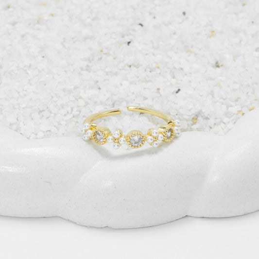 Anillo corona perlas