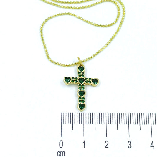 Collar rodio cruz esmeralda