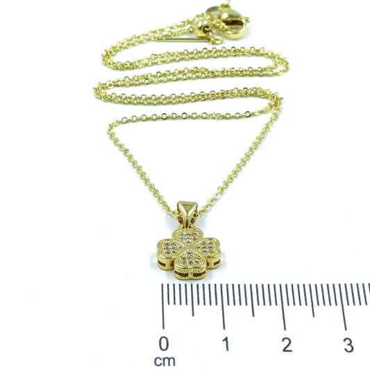 Collar rodio trébol corazones