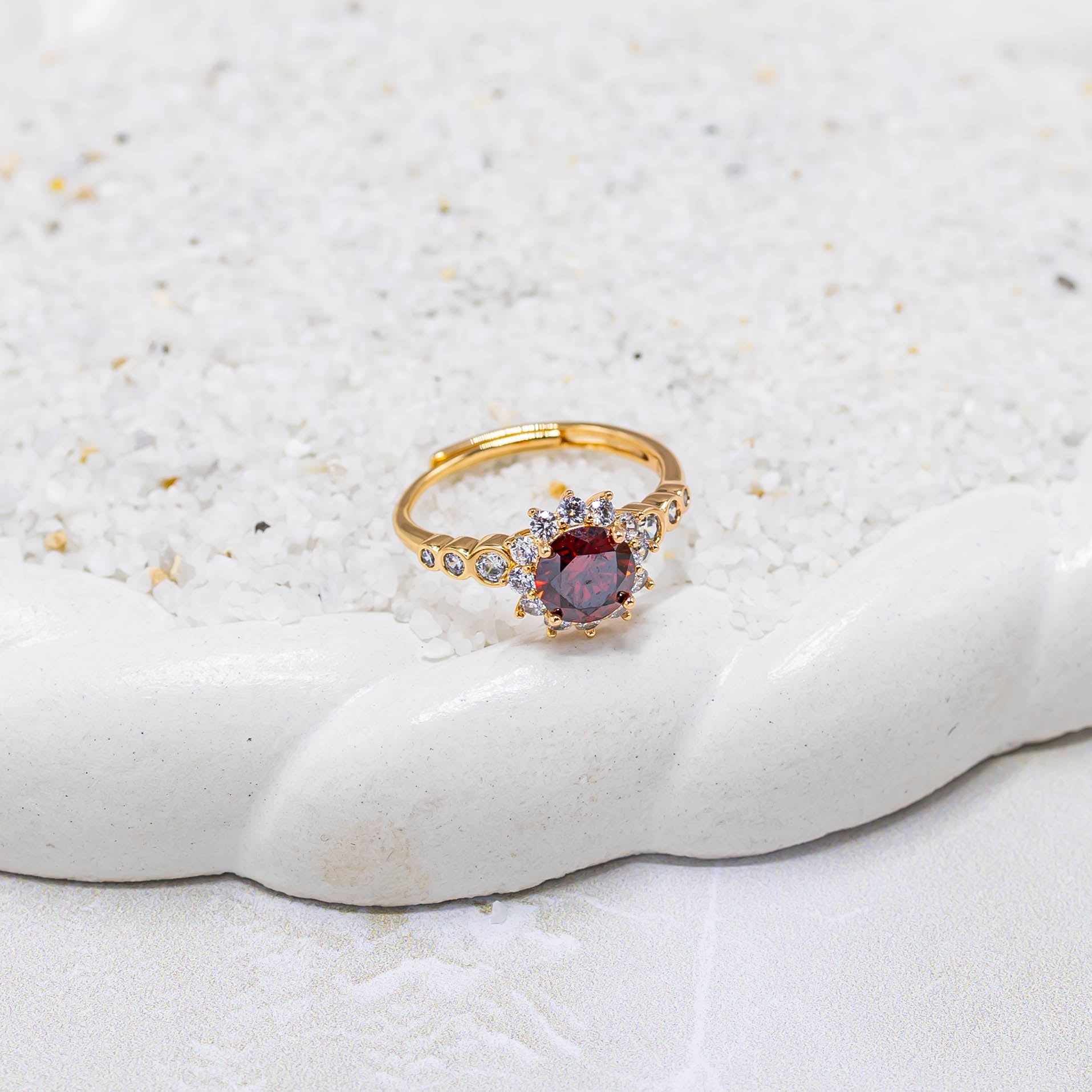 Anillo zircón rojo